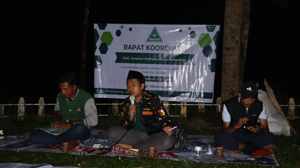 Ajibarang, 13 Desember 2025 – PAC GP Ansor Ajibarang mengadakan Rapat Koordinasi (RAKOR) yang dihelat di Camp Area Germanggis. Acara ini dihadiri oleh seluruh Pengurus Harian PAC GP Ansor Ajibarang dan dibuka oleh sahabat Riszki sebagai MC.